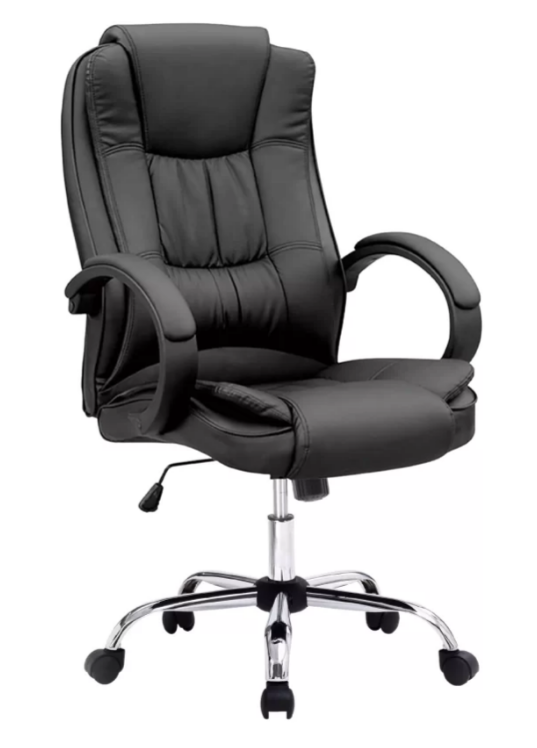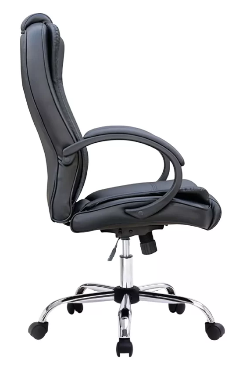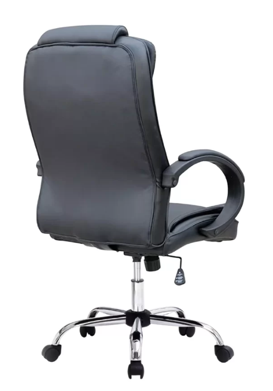 Material: Base em Aço Cromado. Assento e encosto com espuma, revestido em couro ecológico (PU). Rodizio em PU (poliuretano).
