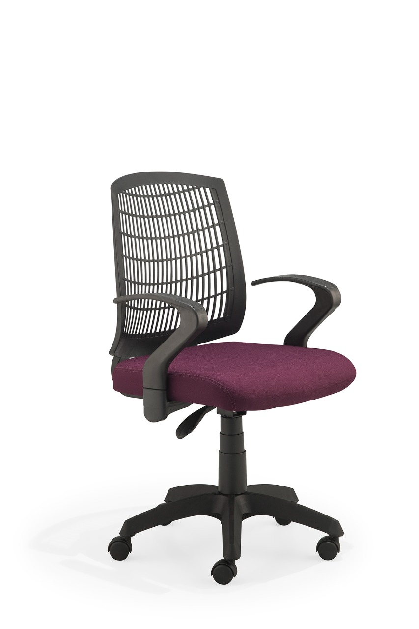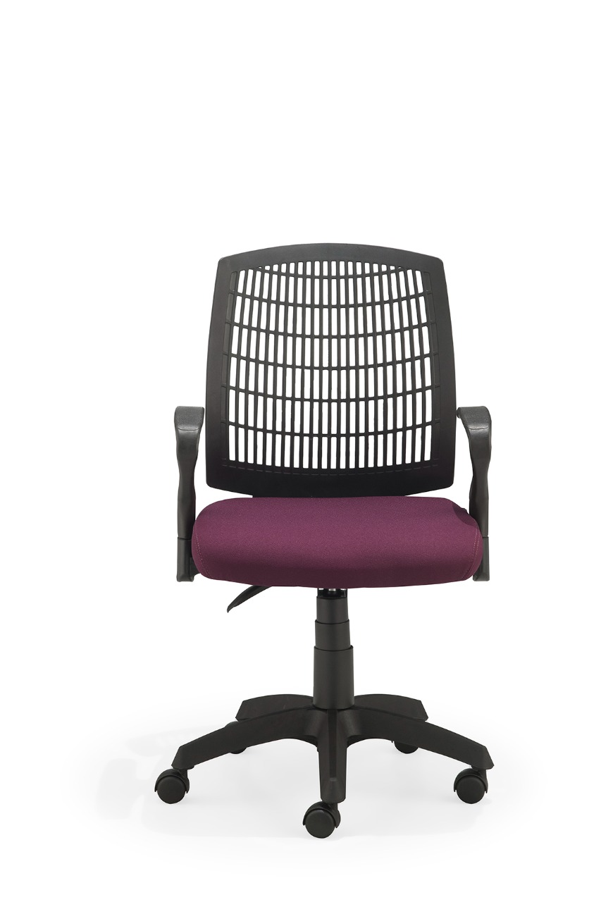 Cadeira Unik com Base Giratória com Tela. Encosto injetado em polipropileno com fibra de vidro. Mecanismo Universal com regulagem de altura. Estrutura giratória