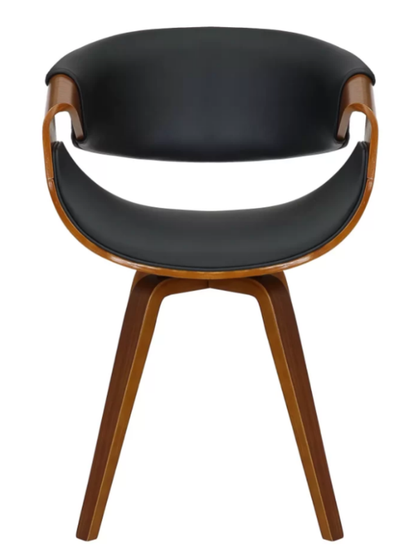 Material: Madeira multilaminada e Revestimento em couro ecológico – PU. – Possui assento giratório.